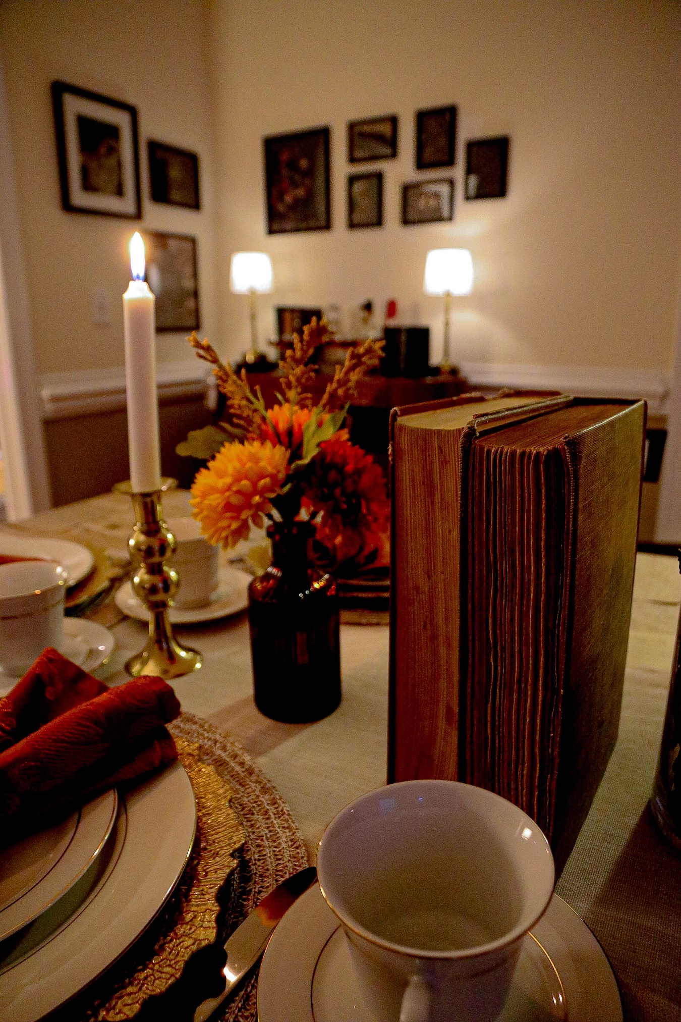 Unshockingly, a lot of my inspiration for the dark academia dinner party decor came from Pinterest. I wanted classic items that fit the the vibes while being timeless enough to work for future fall seasons. After creating a few mood boards and following a palette, my vision really came to life! One of my favorite touches are the page name cards for each dinner guest!
