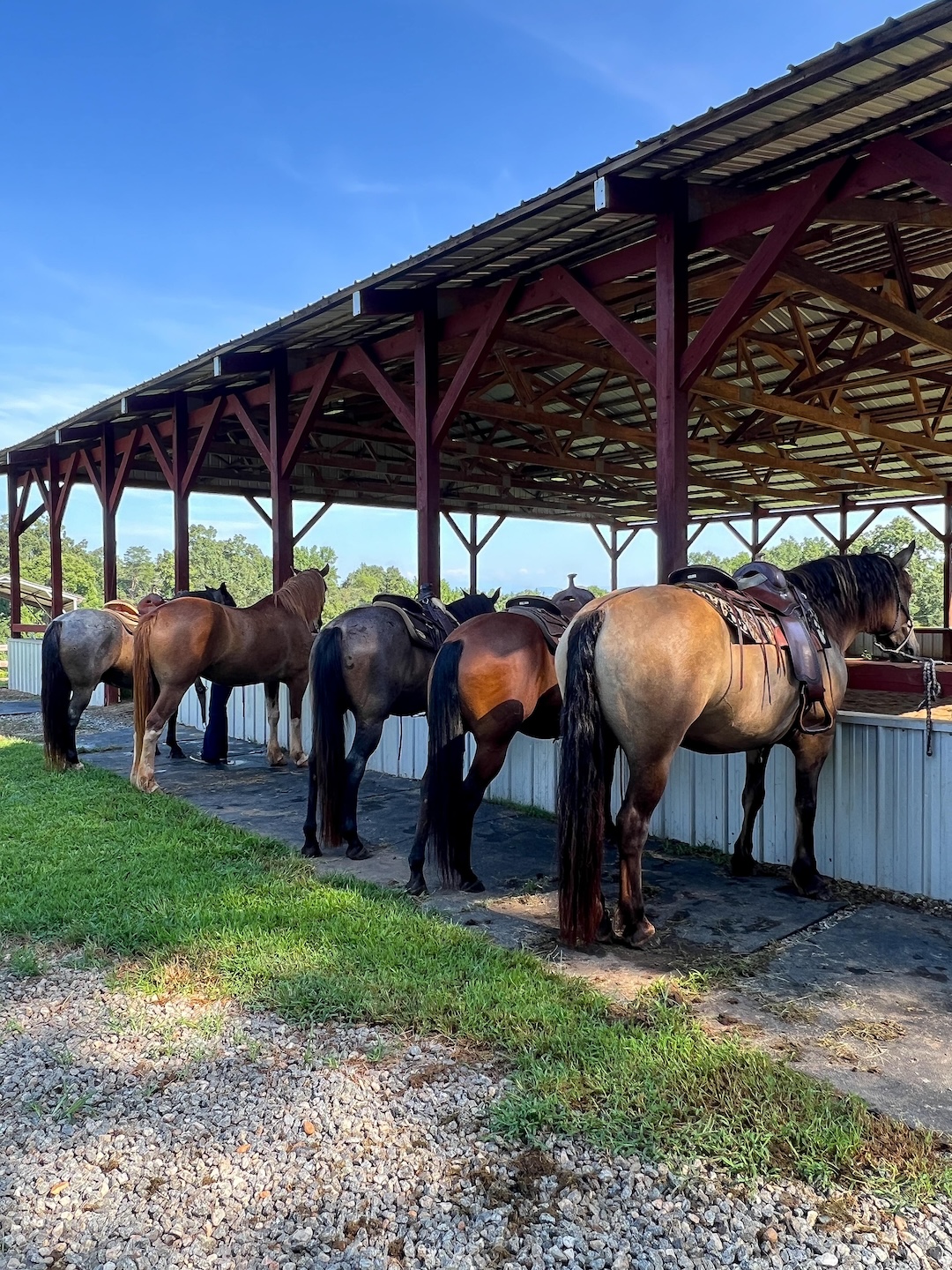 On Saturday, we traveled to Tryon International, a world-class equestrian center about 45 minutes away in Polk County. There we got to explore the grounds, visit the stables, and learn about everything it takes to train the horses. They even shared they had 5-6 Olympians that train at their site year-round! After a small tour, we then took an hour-long horseback ride along the trails. Before this trip, I was a little bit hesitant to try something like this. I haven’t been horseback riding since attending a birthday party when I was 8 years old! However, the staff were extremely knowledgeable and calmed all of my fears before getting on the horses. The trails were shaded by a lot of trees so it didn’t get too hot. And we took a ride at a leisurely pace around the grounds and even stopped by a stream for a break. The horses are well trained for inexperienced riders and children, so I don’t know why I thought I’d be galloping off into the sunset. LOL. It was definitely one of our highlights of the weekend even though I was sore for 2 days afterwards!